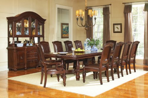 Antoinette 7-Pc Dining Set by Steve Silver The Antoinette 7-Pc Dining Set by Steve Silver is the ultimate in elegant dining furniture. The table can expand to an overall length of 120" which allows for plenty of seating room. The Side and Arm chairs feature a comfortable and sturdy 44" box seat, which provides comfort and durability. Take advantage of the bargain and order today! Set Includes 1 Dining Table, 2 Arm Chairs and 4 Side Chairs. Features: Rectangular Table Top Veneered Chair Backs Hand Carved Legs and Apron &l