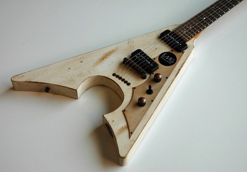 NEW DISTRESSED V-BODY JACKNIFE ELECTRIC GUITAR w/ EMGs Feature